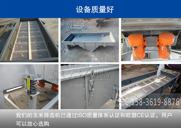 在玉米篩選機(jī)選材開(kāi)始,到設(shè)備送到用戶(hù)手中為止,我們將高品質(zhì)滲透在每一個(gè)細(xì)節(jié)內(nèi),一直致力于把好的設(shè)備和好的施工工藝介紹給用戶(hù),保證用戶(hù)利益大化,我們的玉米篩選機(jī)選用厚度在10-12mm之間的板材,設(shè)備生產(chǎn)過(guò)程中優(yōu)嚴(yán)格的質(zhì)量管理,能夠極大地提高設(shè)備的品質(zhì),穩(wěn)定設(shè)備的性能,目前,我們的玉米篩選機(jī)已通過(guò)ISO質(zhì)量體系認(rèn)證和歐盟CE認(rèn)證,用戶(hù)可以放心選購(gòu)。