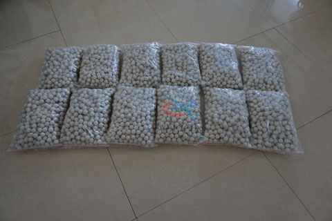 尼龍擋球環和橡膠彈跳球安裝在振動篩的沖孔板與網架之間,其目的是為了固定彈跳球的位置,防止彈跳球聚集到某個角落,造成大部分的篩網面得不到充分的彈擊,從而影響透網效果和篩分效率。