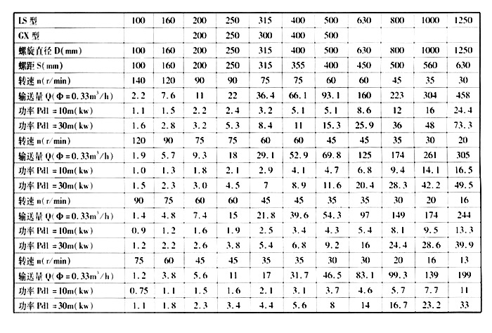 LS型螺旋輸送機產品概述:LS型螺旋輸送機是按照JB/T679-95《螺旋輸送機》標準設計制造,是GX型螺旋輸送機的換代產品。頭部及尾部軸承移至殼體外,吊軸承采用滑動軸承,沒有防塵密封裝置,軸瓦一般采