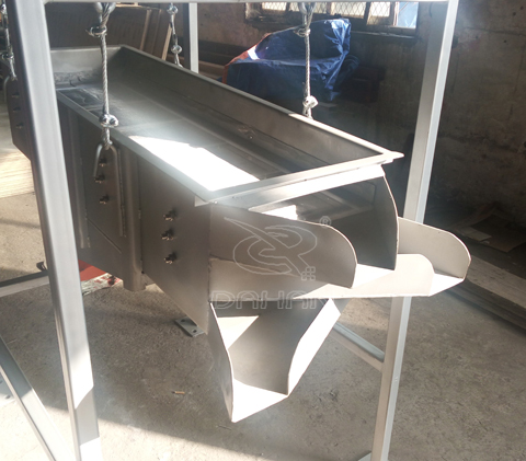 吊掛式直線篩物料從給料機(jī)均勻地進(jìn)入篩分機(jī)的進(jìn)料口,在振動電機(jī)的激振下,向出料口方向邊跳動邊篩分。
