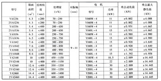 2 Y A □ □YA系列圓振動(dòng)篩的主要技術(shù)參數(shù):