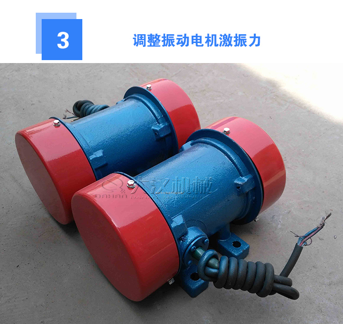振動電機通過改變偏心塊夾角的大小來調節偏心塊,夾角越大激振力則越小,反之夾角越小激振力越大,兩塊偏心塊重合時激振力大。